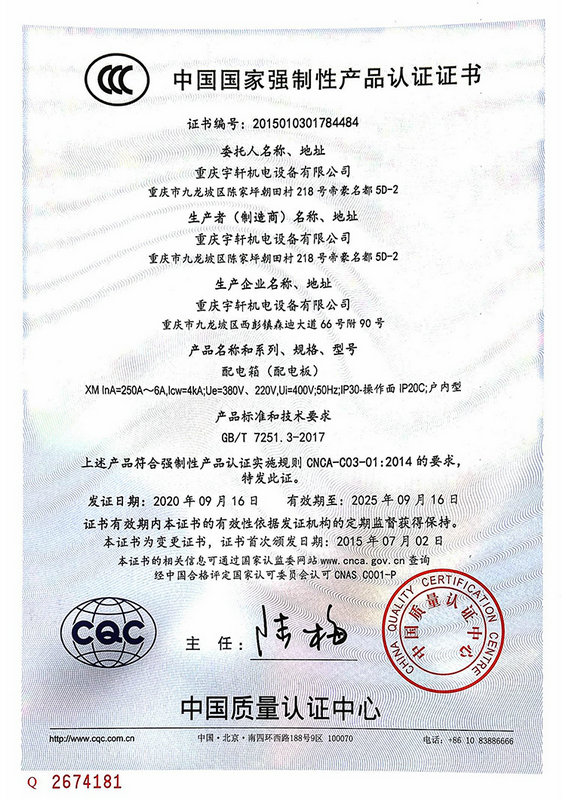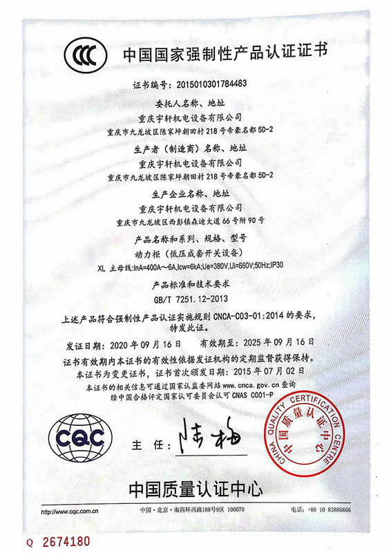 • 動(dòng)力柜產(chǎn)品認(rèn)證證書-中