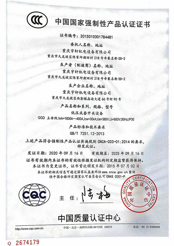 • 低壓成套開關(guān)設(shè)備產(chǎn)品認(rèn)證證書-中